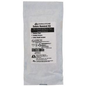 Sterilised ready to use for removing sutures. Pack contains Iris Fine Point Scissors Straight, 11.5cm, and Dressing Fine Point Forceps Straight, 12.5cm, with Safety Sheaths. Made of surgical grade stainless steel, instruments can be recycled and autoclaved for future use. ARTG No. 382581.