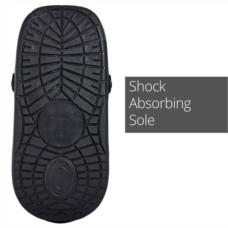 Shock absorbing soles reduces impact at heel strike for greater all-day comfort.