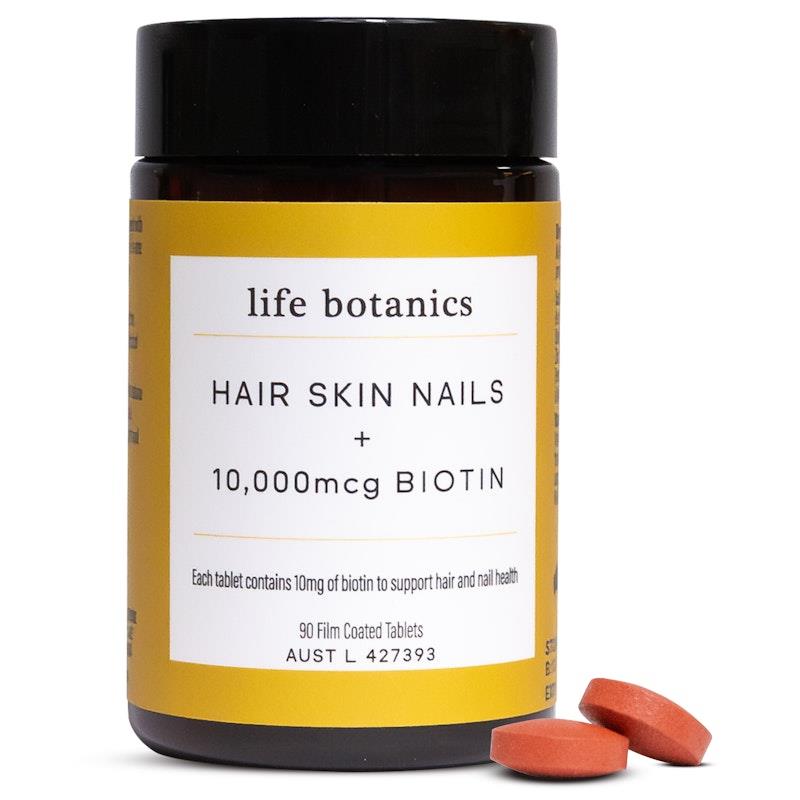 Life Botanics Hair Skin Nails + 10,000mcg Biotin are supercharged with biotin in every serving, alongside other key nutrients to support hair, skin, and nail health. When you just want an all-in-one inner beauty boost, Life Botanics Hair Skin Nails + 10,000mcg Biotin provides all the essential nutrients you need. These tablets contain Vitamin C to help support collagen formation, plus the highest strength Biotin available, an integral building block of your hair and nail structure.