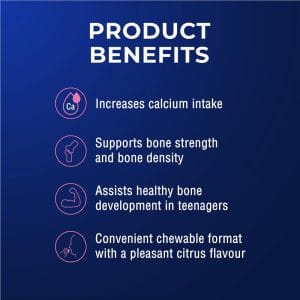 Support your bone strength, muscle function, and healthy immune system function with Ostelin Calcium & Vitamin D3 Chewable Tablets 60. Ostelin Calcium & Vitamin D3 Chewable Tablets are a supplement designed to support bone strength and bone density–and the citrus-flavoured chewable tablets are a convenient alternative to swallowing tablets. Each tablet contains a combination of Vitamin D3 and Calcium Carbonate, and works to support bone strength. Vitamin D3 increases the body’s absorption of calcium. Calcium is a building block of bones, and each tablet provides 600 mg of elemental calcium. Ostelin Calcium & Vitamin D3 Chewable Tablets provide a convenient way to support bone density and bone strength. Adults and teens 13-18 years, chew 2 tablets daily with a meal, or as directed by your healthcare professional.