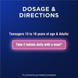 ^IQVIA National scan sales, MAT 31/10/2023 Suitable For: Teenagers 13 to 18 years: Take 2 tablets daily with a meal. Adults: Take 2 tablets daily with a meal. Or as directed by your healthcare professional.