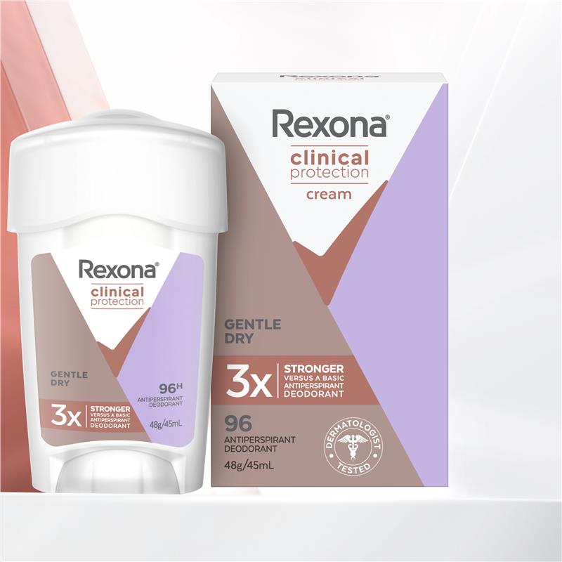 • Rexona Women Gentle Dry Clinical Protection Antiperspirant provides up to 3x more sweat protection than a basic antiperspirant deodorant