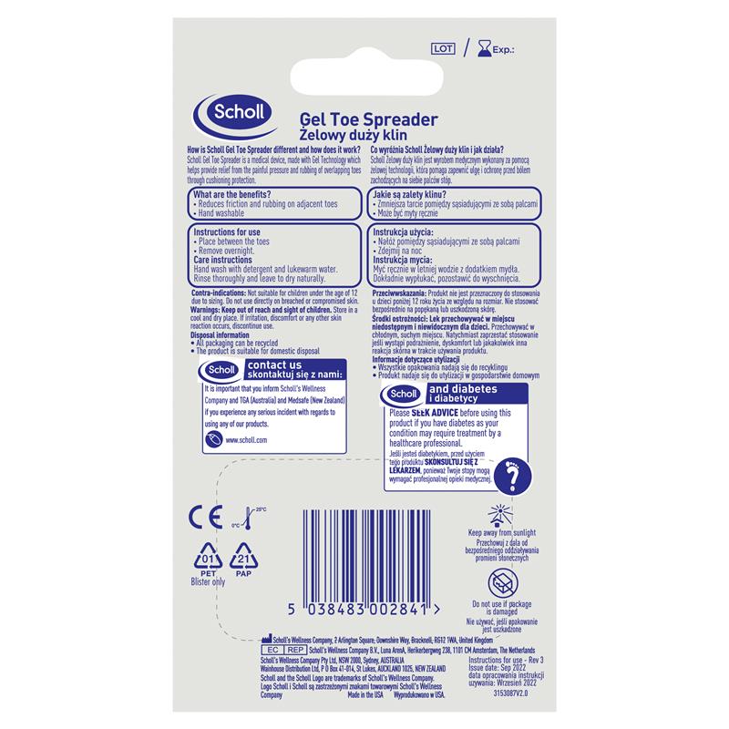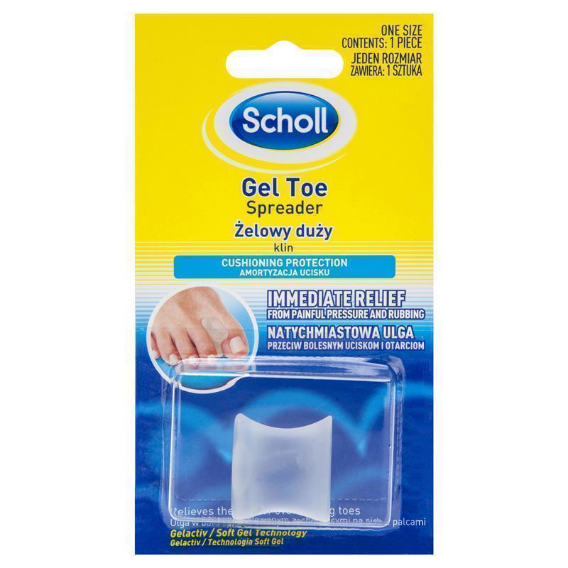 Scholl Gel Toe Spreader is made with Gelactiv/Soft Gel Technology which provides discreet immediate relief and protection from pain of overlapping toes by cushioning.