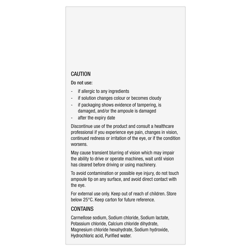 carmellose sodium 5 mg per 1 mL Contains: Carmellose sodium, sodium chloride, sodium lactate, potassium chloride, calcium chloride dihydrate, magnesium chloride hexahydrate, sodium hydroxide, hydrochloric acid, purified water.